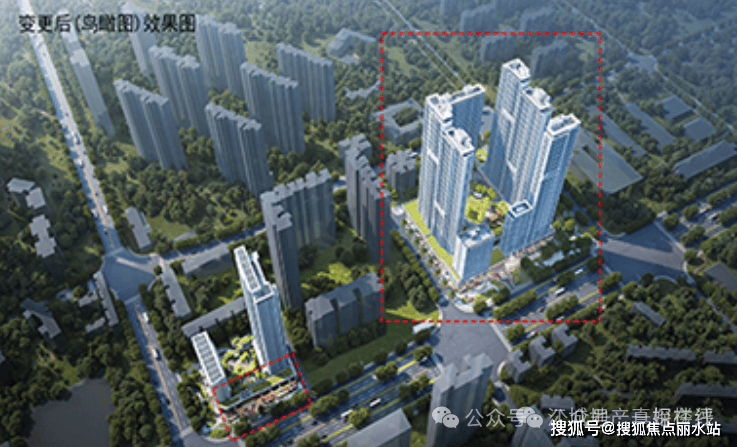 3、变更后B地块4#建筑外轮廊做调整,由三个单元调整为两个单元,变更后4号楼一单元为45层,4号楼二单元为42层。