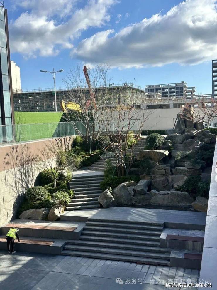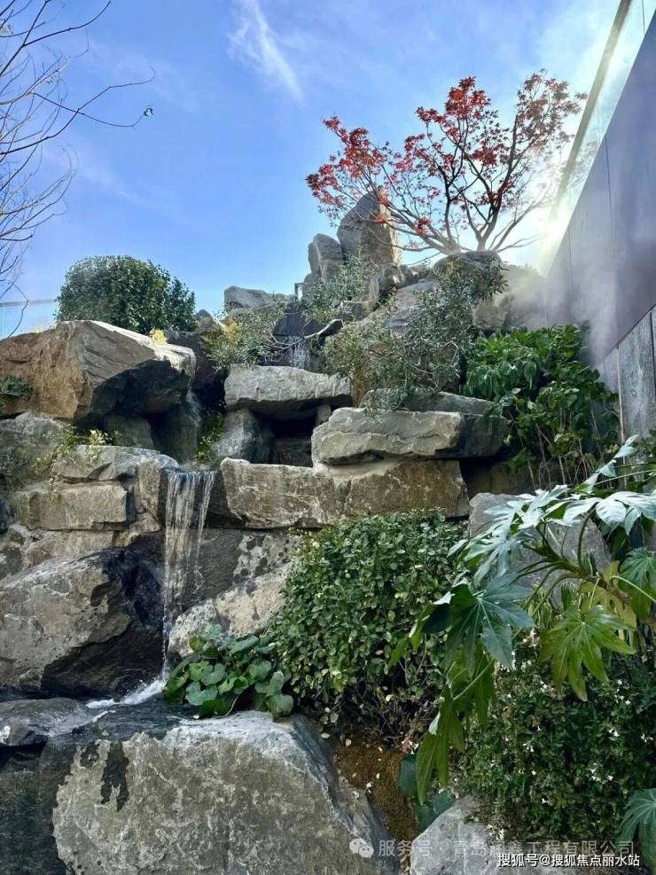 ・枫石映趣意境:红枫与黑石互为映衬,刚柔并济;水流沿石阶跌宕,声色灵动。这一静一动、一暖一冷之间,勾勒出一幅凝练东方画意、又充满现代生命力的立体景观。
