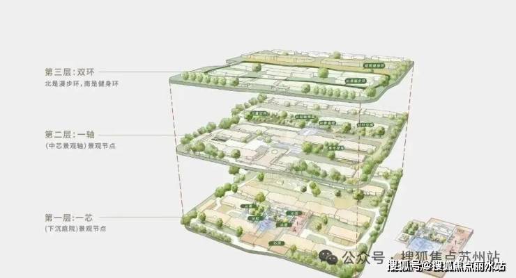 “立体景观芯”,下沉庭院复合型功能空间,非平面铺陈,目之所及皆是立体画境。