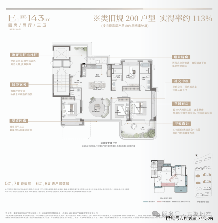 拒绝复制,极致定制。颠覆级超四代宅,以板块内唯一极致超100%实得率、极致南向面宽、极致挑高露台、极致奢居空间、极致LDKSG一体化设计等五大TOP级产品力,革新生活新标准。