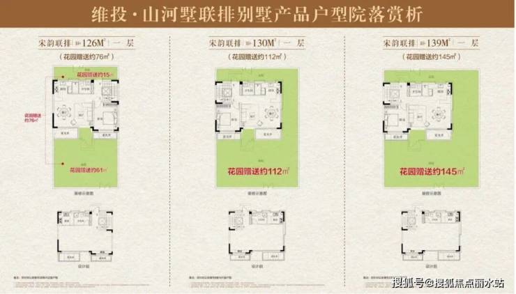 依托对产品的精研深耕,【维投·山河墅】在联排别墅产品上实现关键创新,南向院落进深可达约7米,真正带来“户户皆享超大花园”的体验进阶。具体表现为:约126㎡联排别墅附赠花园面积平均约76㎡;约130㎡户型附赠花园面积平均约112㎡;约139㎡联排别墅附赠花园面积平均约145㎡,让产品价值与生活意趣实现双重跃升。