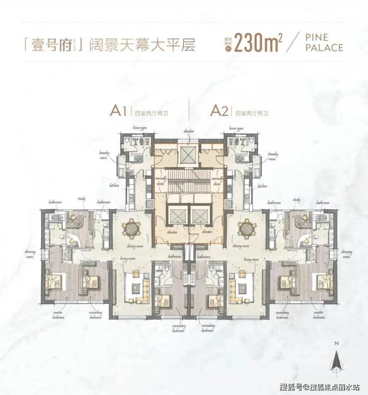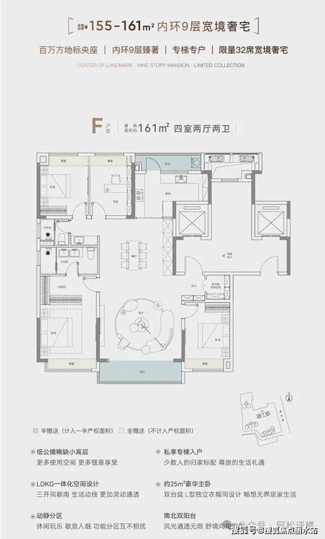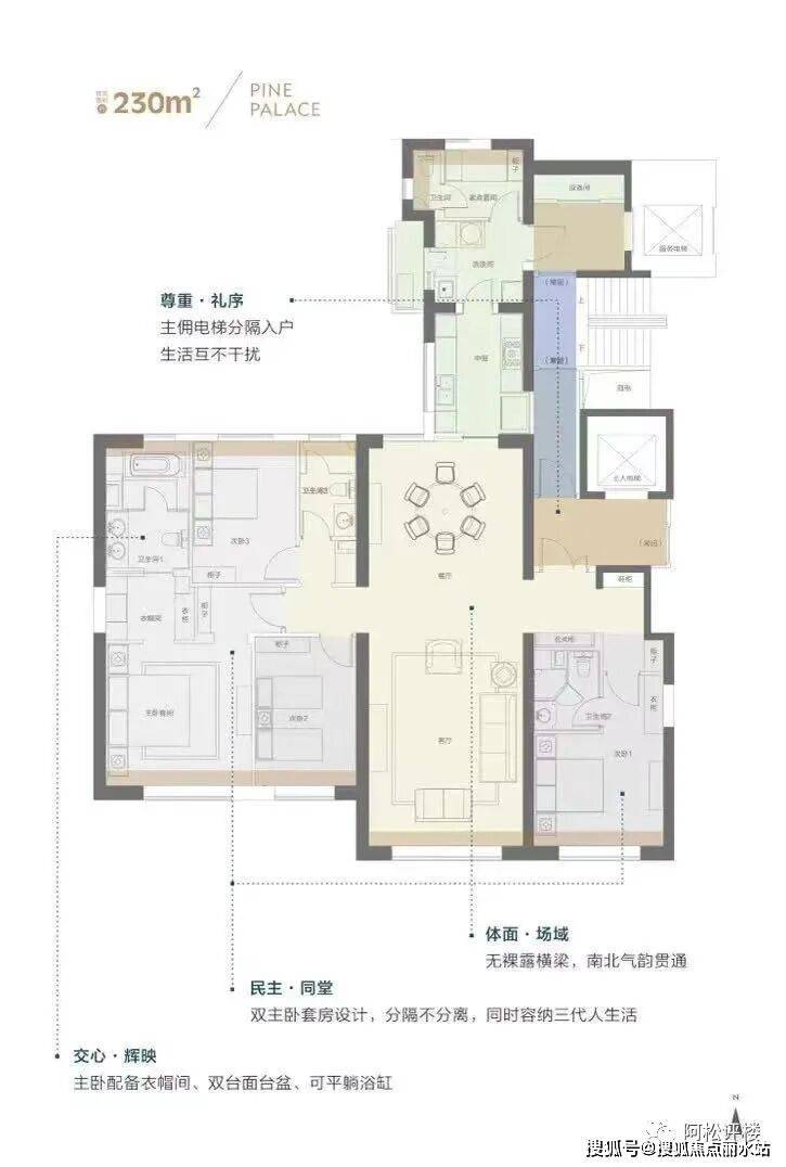 边户,南北通透,四开间朝南,双入户,带独立电梯前室,主卧是带独立卫生间和衣帽间的大套间设计,动静分区,带独立洗衣间和保姆房,不过值得注意的是室内是落地窗,没有阳台。