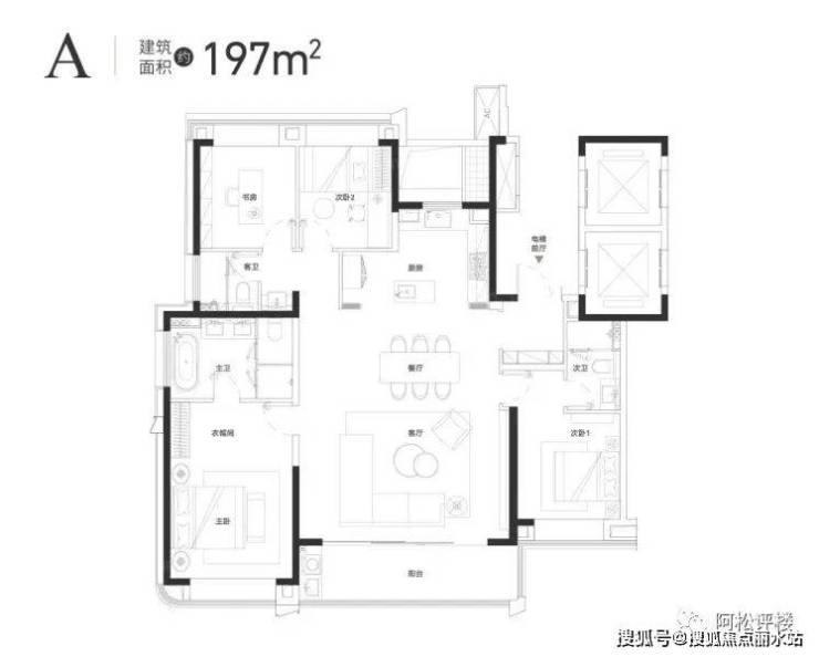 建面约197㎡ 四房三卫:边户,南北通透,南向大阳台。