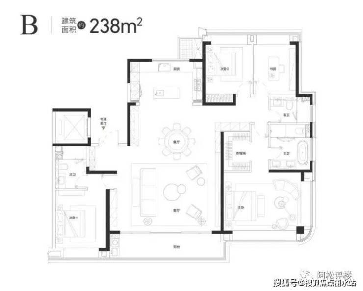 B地块均为大平层户型,都是2梯2户设计的纯板楼,其中1号楼共43-56层,2号楼共23层,3号楼共25层,包含建面约197-238平户型。