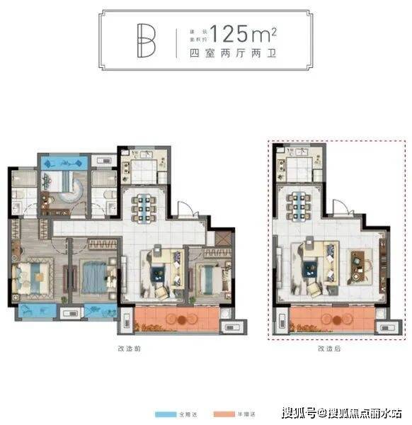 户型面积段约95-143㎡,选择面比较多。125㎡户型南向四开间、双联大阳台、LDK一体化设计,空间利用率高;