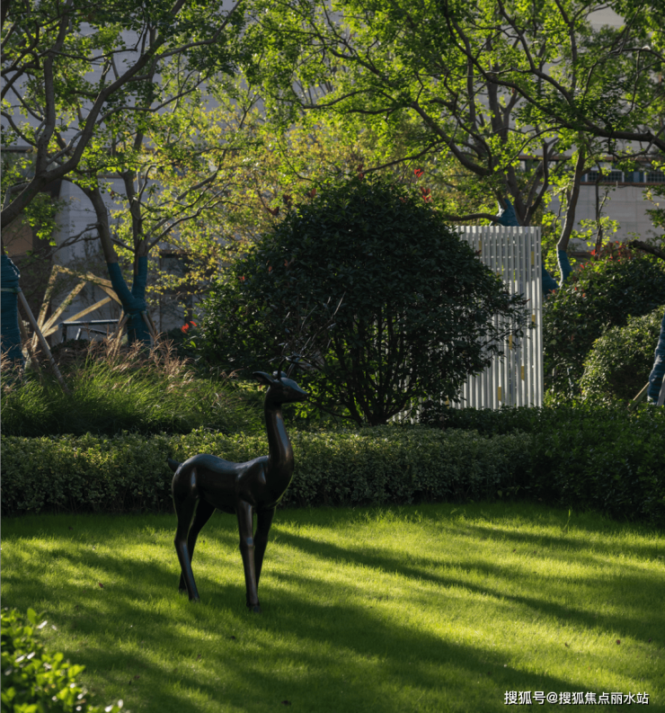 园林景观秉承“删繁就简,溯本清源”的建筑哲学,以简约新中式风格,将江南园林意境与全龄play配套相融合。在园林中打造1167米健康智能跑道,具备夜跑系统、人性化标识系统等功能。