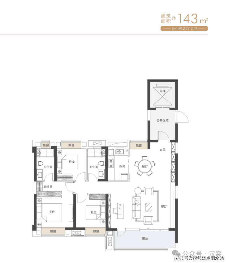 143㎡的“云熙”户型(3+1房两厅两卫)