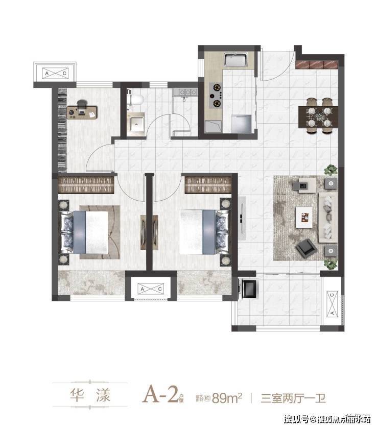 面约89㎡功能三房,舒适通透,区域内户型标杆。