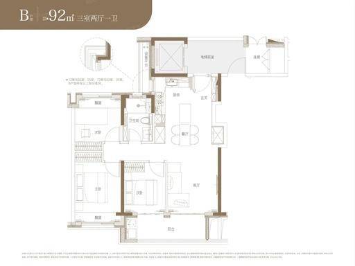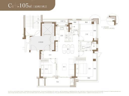 建面约 105㎡ 三房两厅两卫:舒适改善户型,采用 LDK 一体化设计,约 5.5 米横厅布局,南向近 7㎡观景阳台,视野开阔;主卧套房设计,带独立卫生间与飘窗,保障私密性;三开间朝南,全明通透,满足三口之家或二孩家庭的改善需求,总价约 557-610 万。