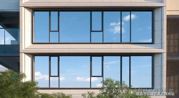 元起观潮府高层建筑立面材料以仿石铝板+大面玻璃为主,房间层高3.3米。
