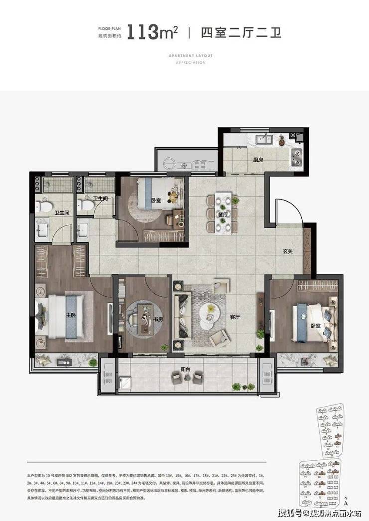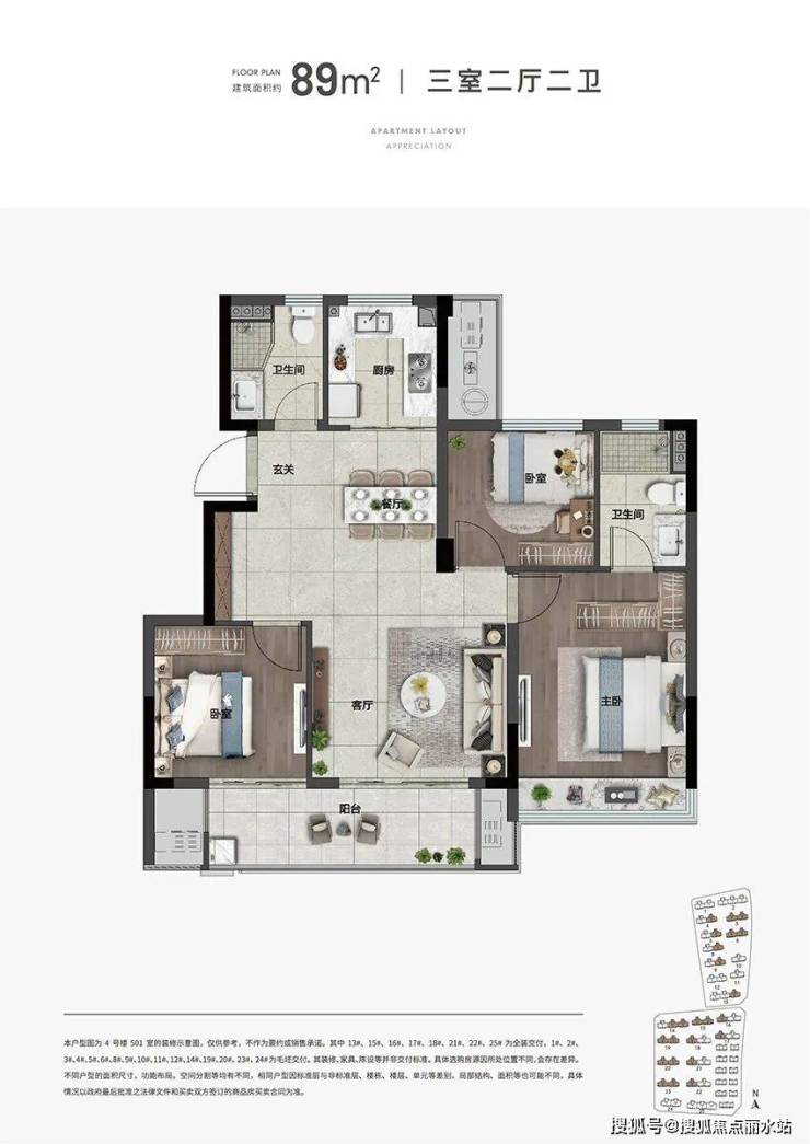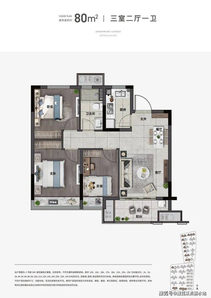 建面约80㎡、89㎡、113㎡三大洋房户型,得房率高约85%,户户全明方正,私密一梯两户。