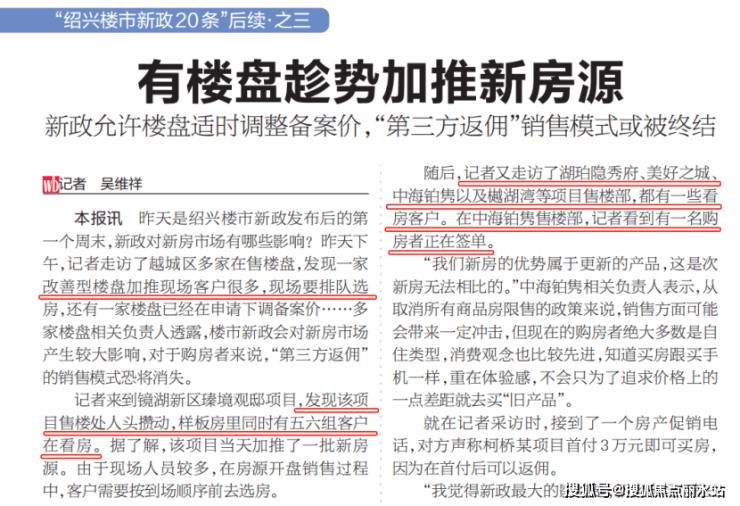 于是,在敏感的市场端,置业情绪肉眼可见的有了升温。据绍兴晚报报道,绍兴不少楼盘都趁势加推了新房源,尤其是低密、改善类项目的看房客户,多了不少。
