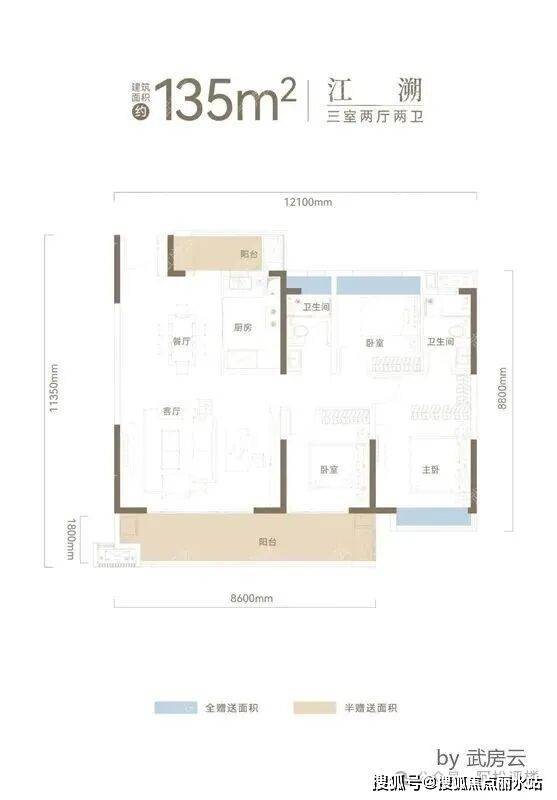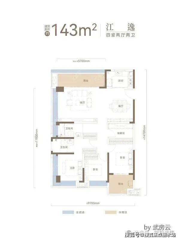 非常通透且三面采光,三开间朝西,北边有较大的观江面,西边和东边也有一定的观江视野,这个户型算是看江产品里面积较小的。