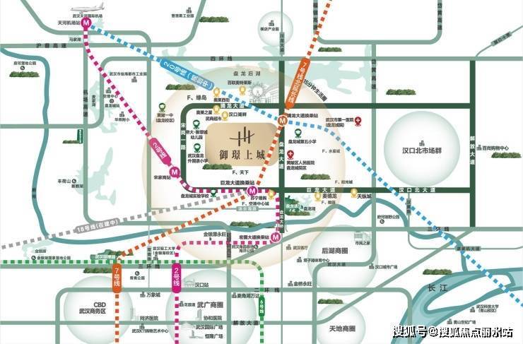 御璟上城正大门距离地铁7号线腾龙大道站仅400米左右,步行5-8分钟即可到达。无缝衔接2&7号线枢纽换乘站--巨龙大道站,直通汉口、武昌主城中心轴,更可换乘6号线、1号线,一站式速达主城核心区。