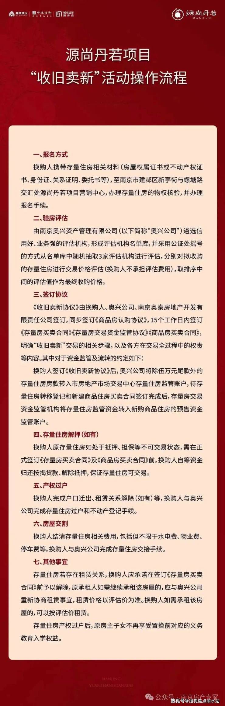 存量住房收购价格以评估价为依据,评估报告仅认可自源尚丹若项目启动“2025年‘收旧卖新’活动”后由南京奥兴资产管理有限公司委托评估单位所出具的符合要求的评估报告,除此以外任何单位、任何时点出具的评估报告均不予认可。