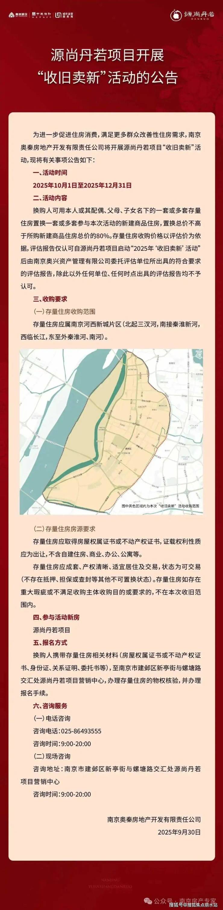 就在近日,河西南源尚丹若突然发布源尚丹若项目开展“收旧卖新”活动的公告和操作流程, 帮助买房人解决当下“卖旧买新”的大难题!