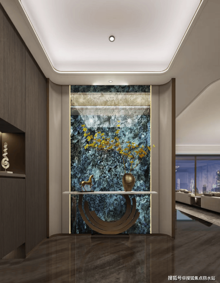 从入户开启就全副武装,奢石门牌、盼盼铸铝门,再加上卡萨帝五合一智能门锁。玄关处智能面板,能实现智能对讲、一键呼梯、手机APP全屋家电在线控制。