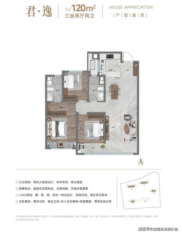 它的户型规划120平起步,最大户型178平,主力户型都是120-130的三居室。