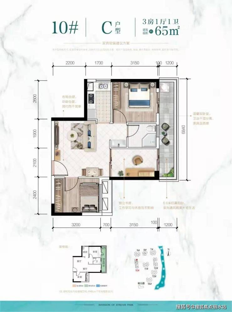 65 ㎡三房一厅一卫:首付16万 /月供2600