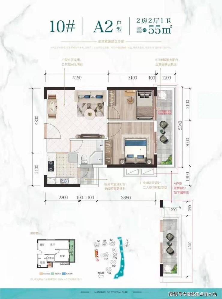 55㎡二房二厅一卫:首付11万起 /月供2000