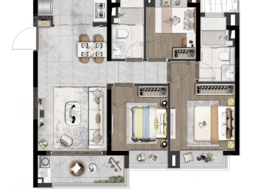 深嘉上府精准洞察当代家庭居住需求,主推建面约 88-99㎡精装三房户型,兼顾刚需首置与轻度改善,户型设计方正通透、全明格局、动静分离,空间利用率极高,无浪费面积。