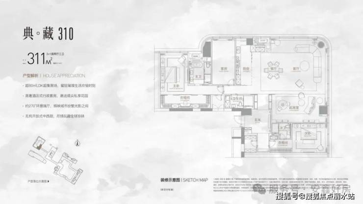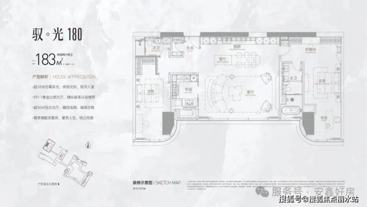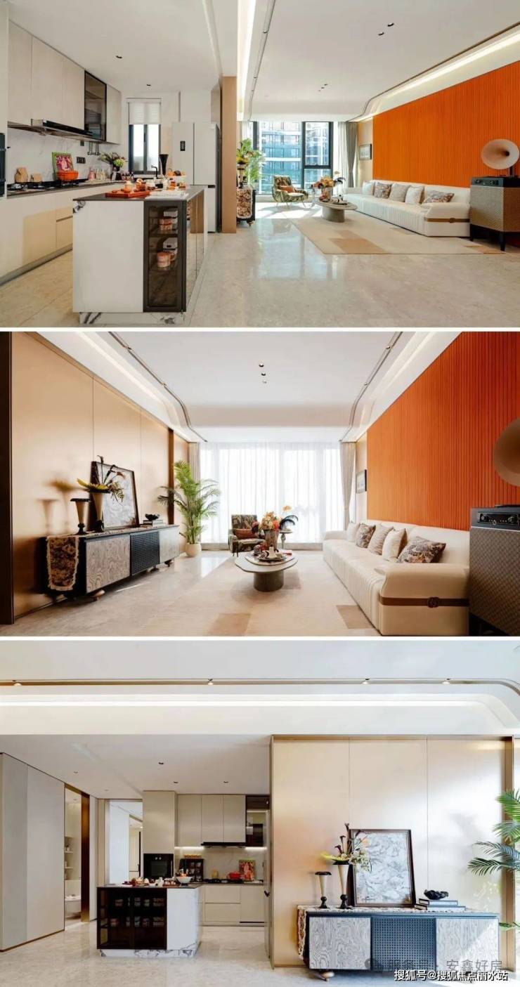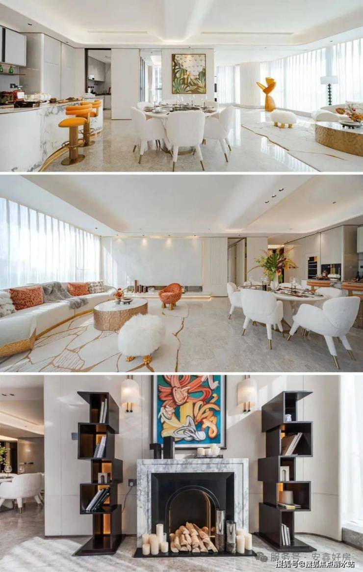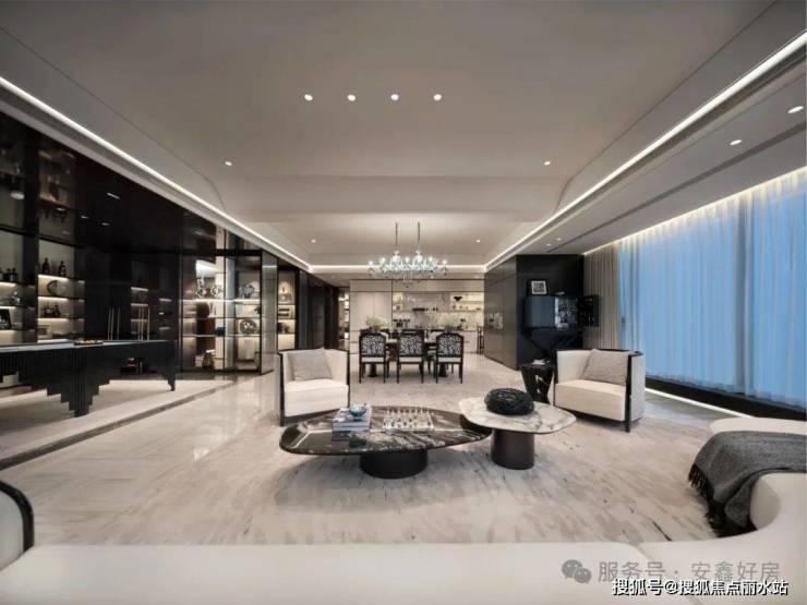 精装修采用奢玉背景墙、整包皮革、大理石地面、闪粉烤漆柜门等,硬装部分使用嘉格纳、高仪、博世、唯宝、弗兰卡等大牌,还有波浪纹理弧形穹顶、无缝化拼花工艺、嵌入式隐形精钢拉手、抗冲击朦胧美夹丝玻璃、柔和倒角处理及踢脚线暗线处理。