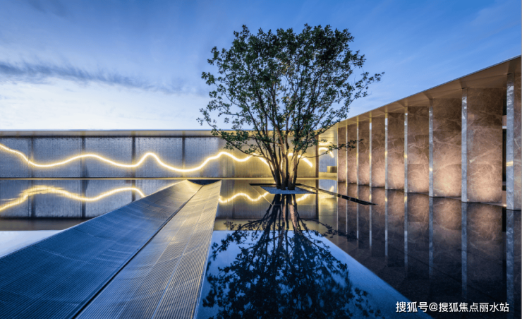 归家大堂的两侧静水如镜,一株姿态优美的迎客松矗立门庭,以东方的待客礼仪俯身相迎,脚步匆匆就在这瞬间松缓了下来。6年前栽下的十余棵栾树,已在庭院上方织就一方生机勃勃的绿色穹顶,每一眼皆怦然心动。