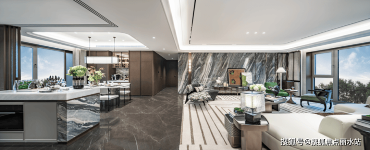 缓步走入超大LDK一体化空间,尽情感受场景流转与情感融入,和项目对空间诠释的精准拿捏。指尖划过玄关柜时,能感受到编织皮革的细腻纹理。天然大理石、木饰面、岩板与不锈钢超窄踢脚线,层次丰富的弧形吊顶与光源体系,合力营造出多元并蓄的装饰效果。全屋还暗藏六种大容量收纳柜,实现收纳与物品的精准匹配。