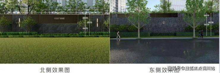 凤凰原北侧围墙,采用石材+金属上下组合,以半通透设计,营造通透美感;东侧围墙,以全石材+金属标识装饰 ,让小区更具隐奢感