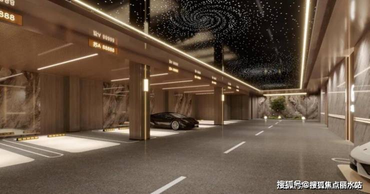还有一些魔鬼细节:地库出入坡道采用10CM厚度马蹄石、坡道加热,顶部打造星空顶
