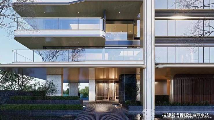 与院墅不同,峯江组团整体采用的是国际风现代立面的设计手法,采用大面积双层中空low-e玻璃配合金属幕墙,简洁硬朗的线条感与空中花园结合,淡雅、轻盈、通透,极具时尚感。