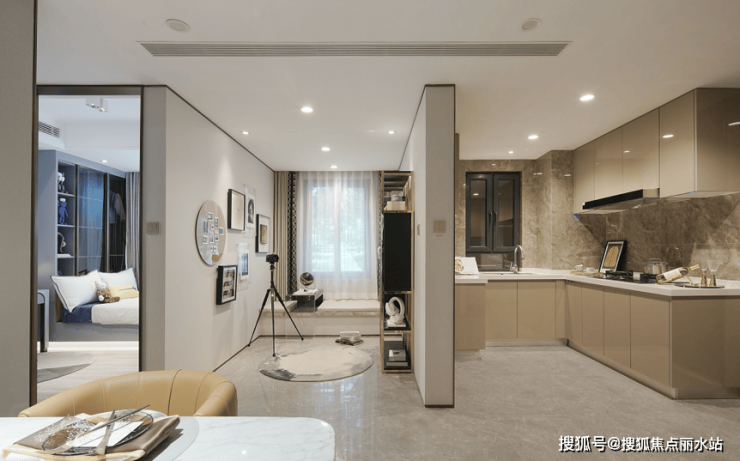 考虑项目落点于苏州这座融汇古今的都会,延续东原品牌理念,下叠A户型空间以“绅豪影像”为题,作为城市进程的“时间见证者”。