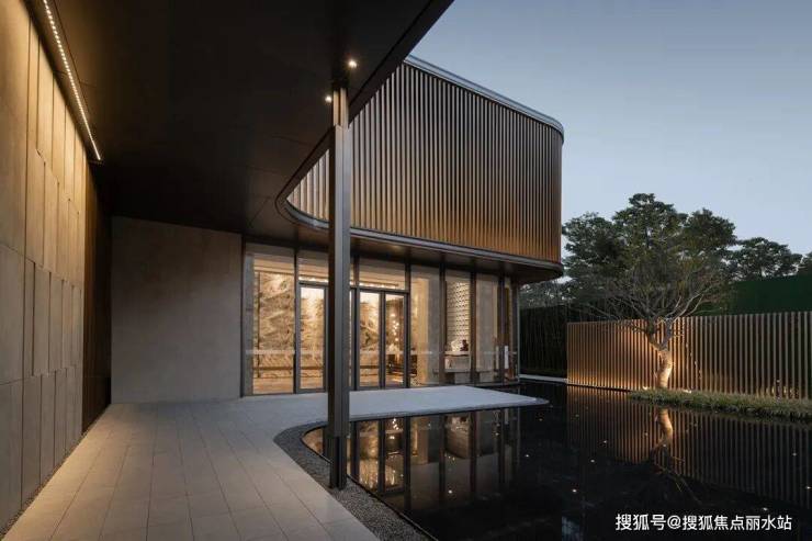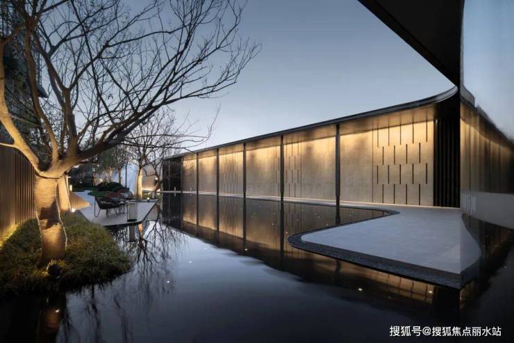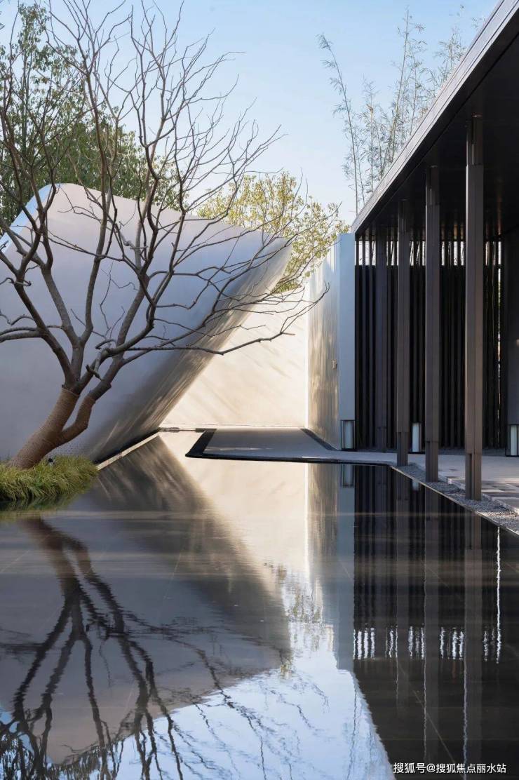 廊、柱、水——形成经典的游憩空间,通透的玻璃幕墙,模糊了室内外界限,置身室内,宛若水中。