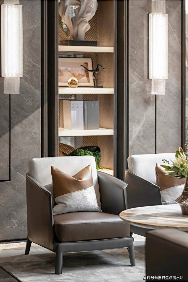 客厅满足复合社交功能,满足内外社交需求,专属尊贵运动情景打造,岩板、皮料与金属的碰撞使空间呈现出奢华动人的质感与层次。