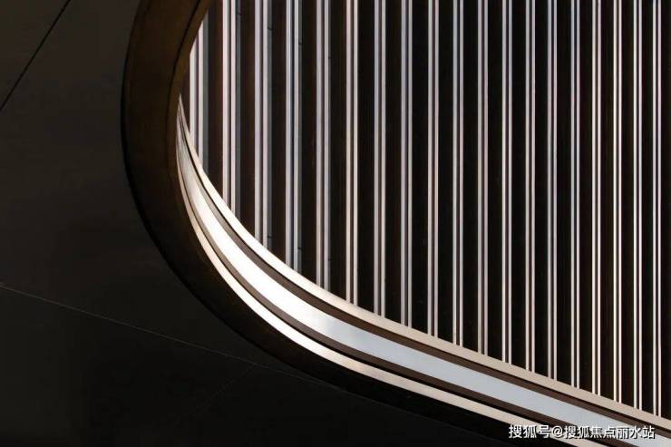 天花灯饰以鱼尾为原型,提取优美流线形态,游经此地,绕池闲步看鱼游,打造人与自然和谐共处的人文情怀。