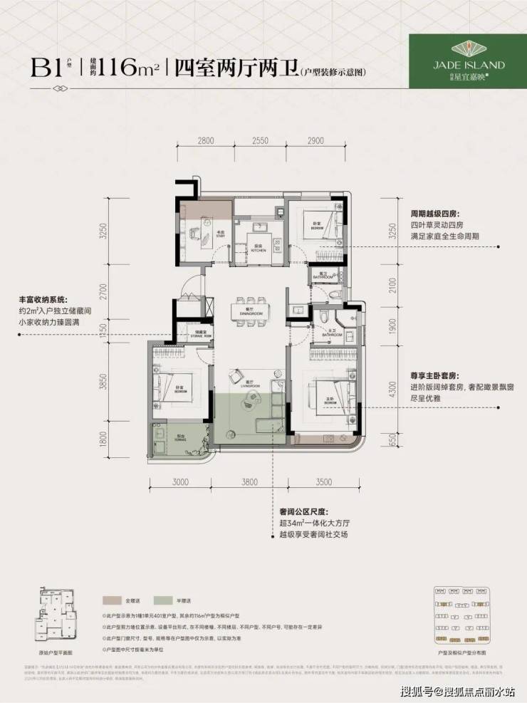 以116㎡为例,是一个标准的四叶草户型。