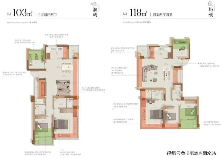 沐芳洲的103㎡和118㎡户型,更是做到了直逼100%含赠得房率。