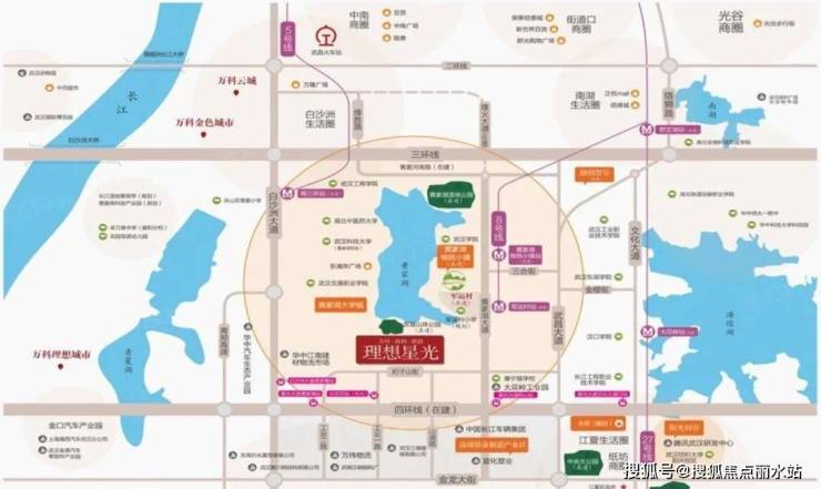 万科保利联投理想星光位于豹山街与山湖大道交汇处,楼市划分属于军运村黄家湖新区板块,行政划分属于江夏区,项目距离距离三环线约5.9公里,属于三环外。