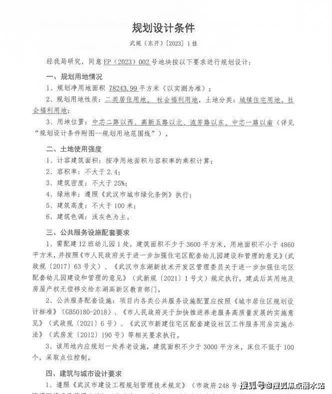 3、该用地内应规划一处养老设施,建筑面积不少于3000平,床位并不低于100个,采取点位控制。