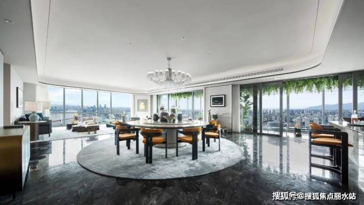 所以,我们既能在建面约465㎡的交付样板间里,看到超30㎡的「水晶阳台」,看到阔达约130㎡、270°全景视野的客餐厅;