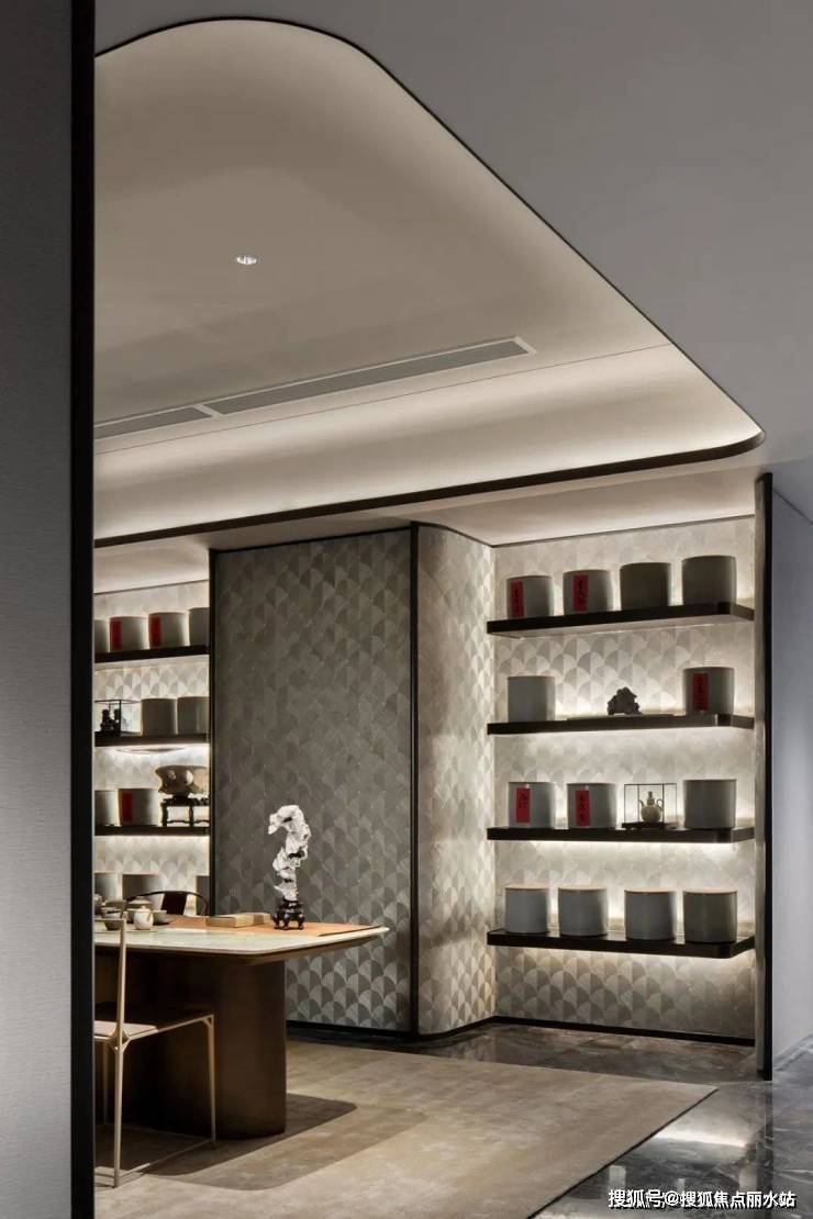 还能在同面积段的创意样板间内,看到周先生将其爆改成「史上最奢侈单卧多厅」,用茶室、议事区、会客间,大量的艺术空间营造出大宅门里社交的风雅与气度;