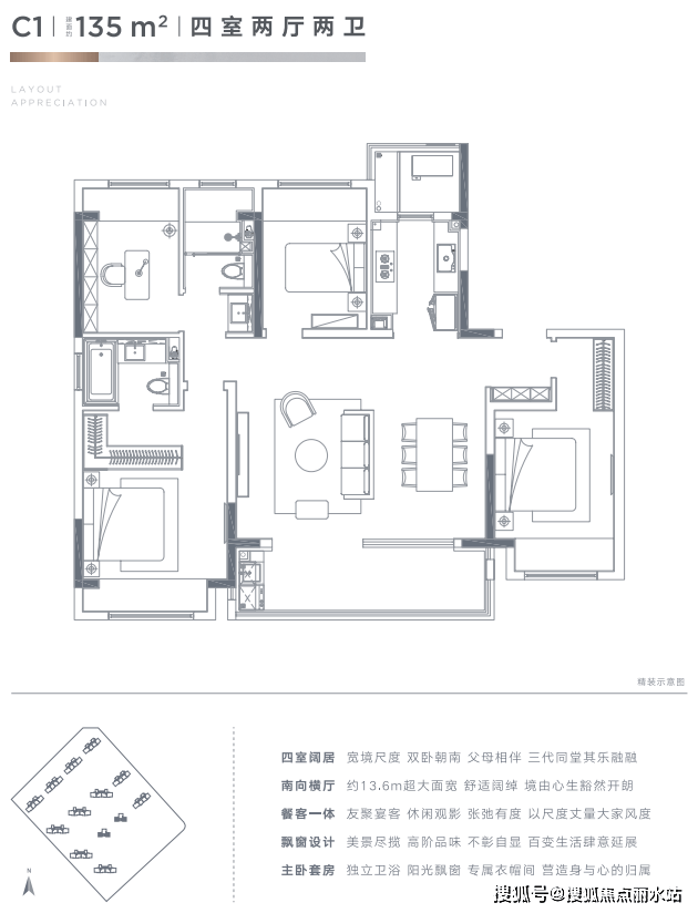 乐云庭立面以经典高级灰色调,搭配高透low-E玻璃,融合中西在地风格,高窗比流线体,金属质感包边,超大窗墙比,彰显精致典雅,形成国际化与未来感的交错重叠,凸显国际恒贵人居质感,敬献圈层人物。