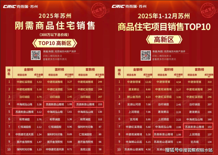 即便放眼全年、全价段的苏州商品住宅综合榜,它仍强势冲入面积榜与套数榜双前十。