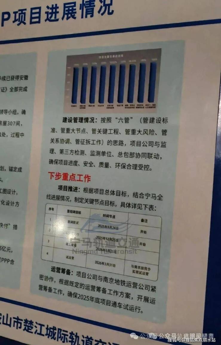 近日,一张“南京至马鞍山城际铁路(马鞍山段)PPP项目进展情况”的展板图片流出,展板上的信息可以看到宁马城际下步重点工作计划。
