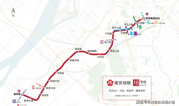 16号线是南京地铁三期规划中的线路,线路起于板桥南站,止于机场跑道旧址站,全长25.2公里,均为地下线,设站17座,新建车辆段一座、停车场一座、控制中心一座。