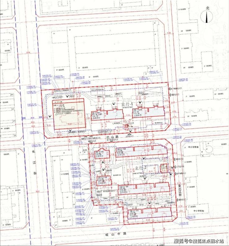 北区主入口在南侧巴山路的9#(物业用房),配了园区大门;