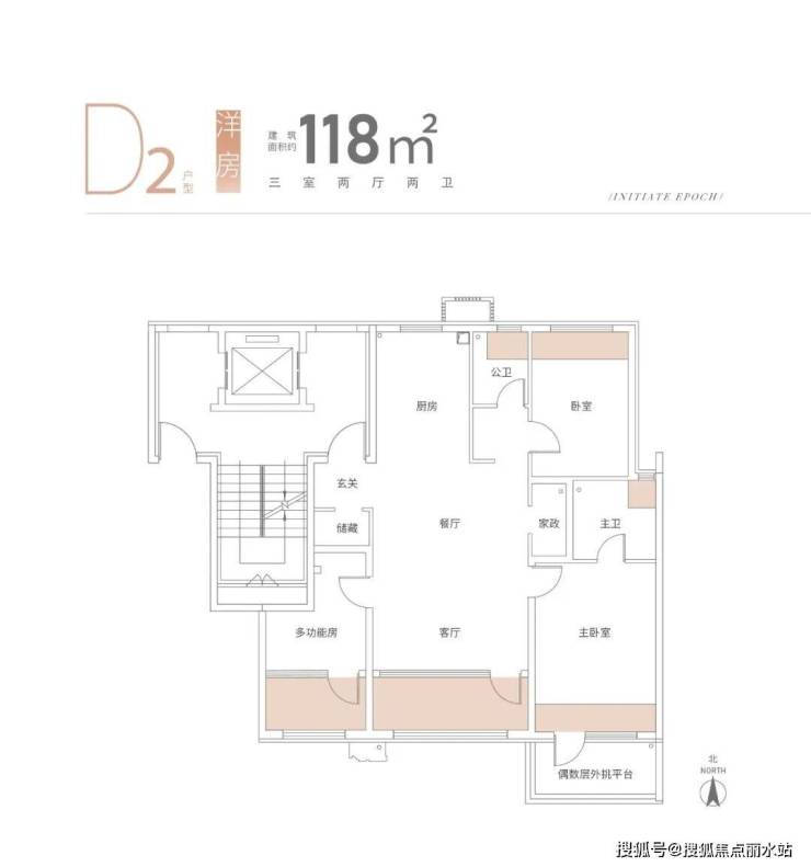 北区就2栋17层小高,就一个130平的户型,四室两卫四叶草布局。