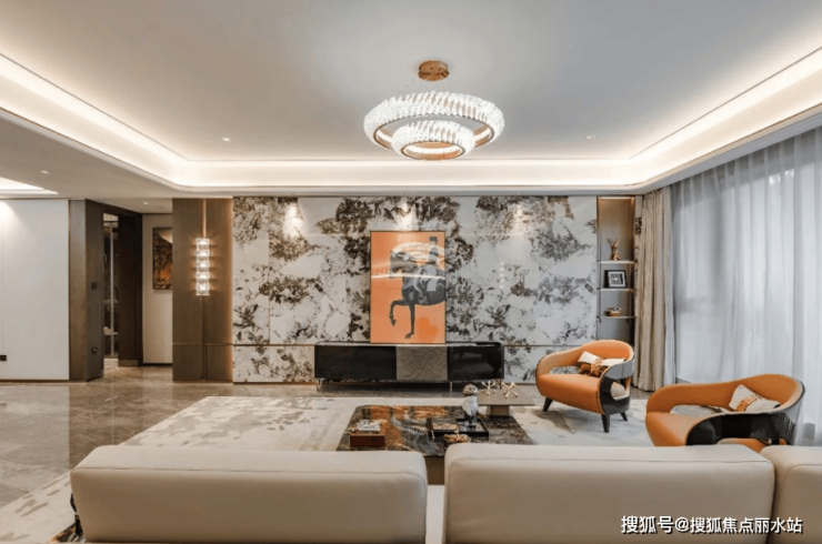 • 精装标准:"普拉达绿"奢石装扮的入户大堂,盛夏精灵岩板电视背景墙