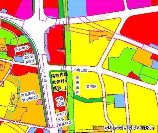 招商代建的紫金村项目,该项目位于武昌区中山路与小龟山路交汇处项目规划图可以看得到,整个小区规划有风雨连廊全小区覆盖,同样带有下沉庭院、泳池等,所以标准还是很高的值得我们期待。都说是下一个招商武昌版