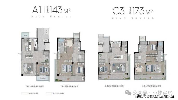 项目主推建面约143、173平毛坯叠墅,上叠总价约310万左右,中叠总价约240万左右,下叠总价约350万左右。